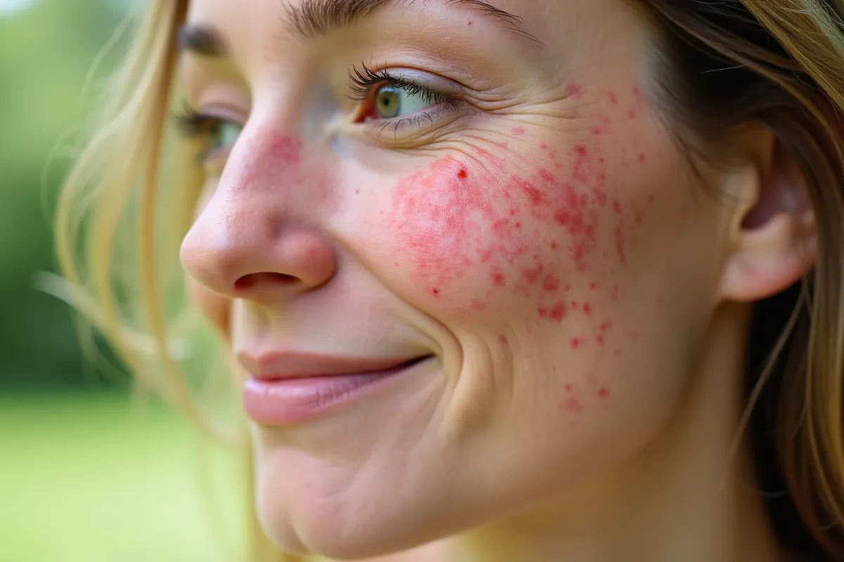 Trądzik różowaty to przewlekła choroba zapalna skóry, która najczęściej dotyka kobiet, ale nie omija także mężczyzn. Objawy tej dolegliwości pojawiają się głównie w centralnej części twarzy – na policzkach, nosie, czole i brodzie występują charakterystyczne zmiany. Zazwyczaj pierwszym sygnałem jest nagłe czerwienienie twarzy, które może przekształcić się w długotrwałe zaczerwienienie. W miarę postępu choroby mogą występować różne zmiany skórne, takie jak rumień, grudki czy krostki.